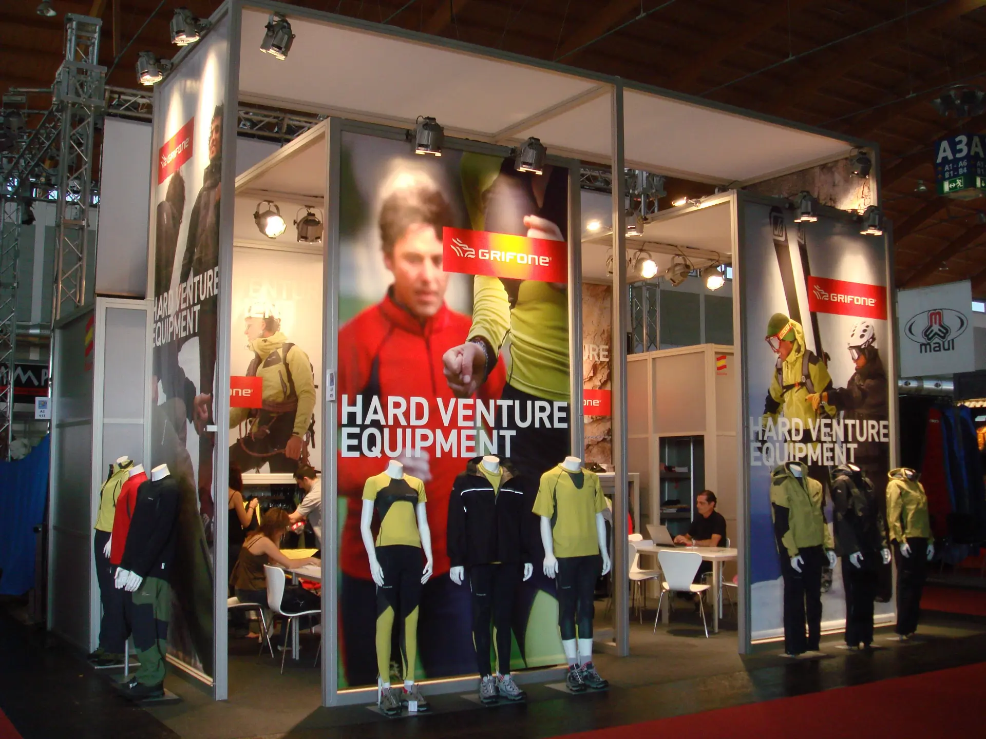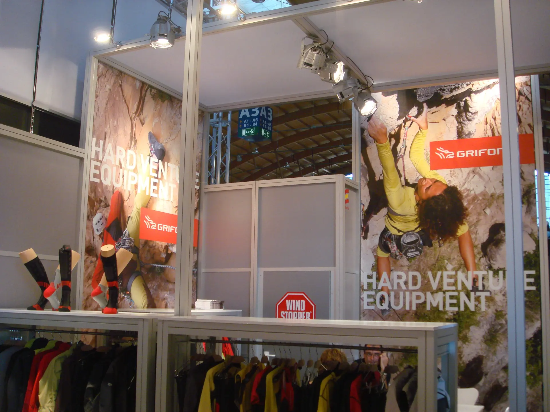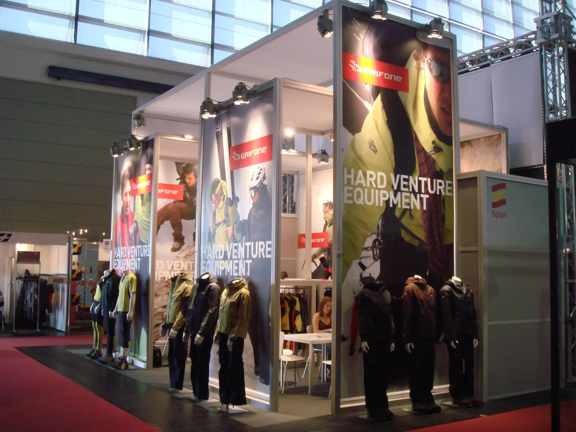 Estand dissenyat per a la fira Ispo de Munic, amb un concepte modular d’estructura d’alumini i panells de lona tensada, que defineixen els diferents ambients i les circulacions, i alhora serveixen com a suport de la comunicació de campanya.