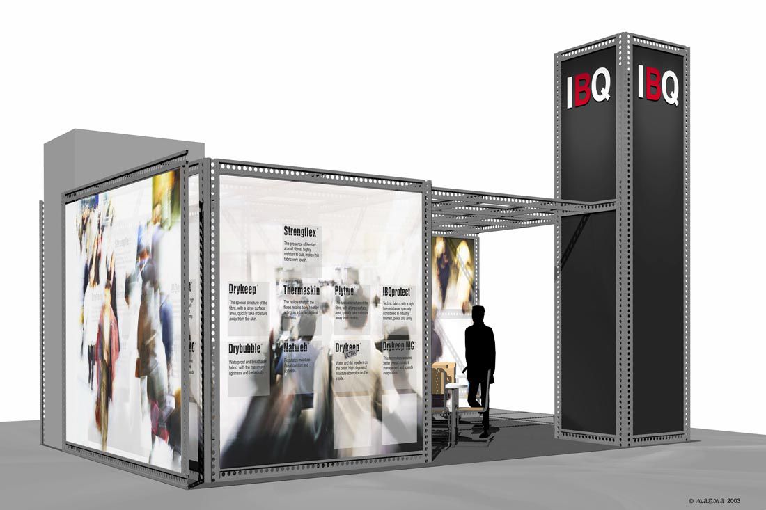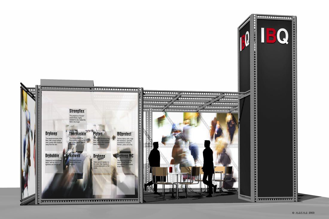 Estand dissenyat per a la fira Ispo de Munic, amb un concepte modular d’estructura d’alumini i panells de tela tensada, que defineixen els diferents ambients i les circulacions, i alhora serveixen com a suport de la comunicació.