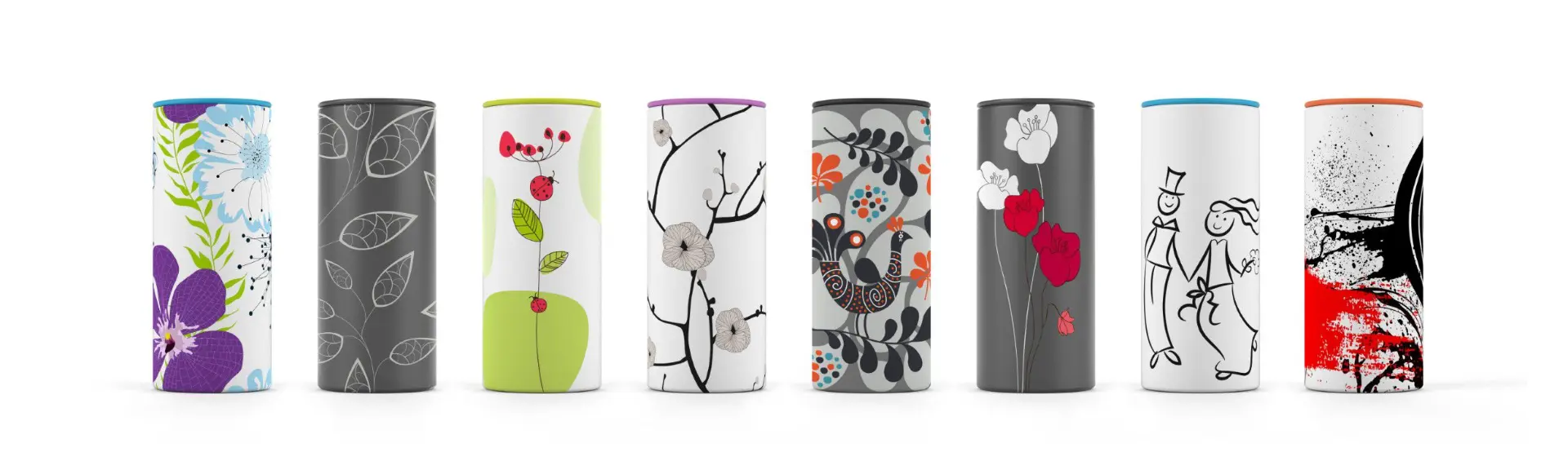 Finalment, després d'analitzar el mercat actual i les noves tendències, s'escull un packaging tubular d'alumini, un material 100% reciclable, que ens ha permès prescindir de la caixa de cartró i l'embolcall de plàstic. Se li dona personalitat amb la imatge blanca i negra de la companyia on la codificació de les referències i el codi de barres continuen sent es protagonistes del disseny gràfic, aconseguint un disseny elegant i minimalista. L'únic punt de color són les tapes dels envasos que indiquen la categoria de producte.