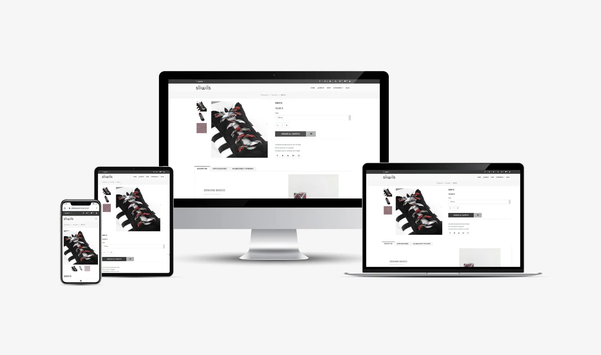 Web corporativa i botiga online per a la marca Sliwils, fabricant i distribuïdora de complements per a la moda a partir de teixit estampat a biaix.